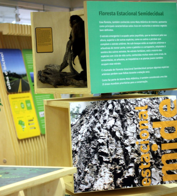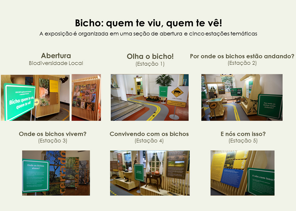 A exposição conta com painéis informativos, registros fotográficos e ilustrações que contextualizam como se deu a ocupação dos ambientes naturais pelo homem no interior paulista e o que restou destes ambientes. Ao longo das cinco estações temáticas que compõem a exposição, os visitantes ficam frente a frente com o lobo-guará, a jaguatirica, a onça parda, o sauá e o macaco prego – animais taxidermizados (“empalhados”) que são vítimas comuns de atropelamentos na região, além de imagens, sons, objetos e jogos que complementam as atrações.