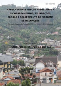 INSTITUTO GEOLÓGICO (IG-SMA). 2014. Mapeamento de riscos associados a escorregamentos, inundações, erosão e solapamento de margens de drenagens – Município de Campos do Jordão, SP. São Paulo: Instituto Geológico, Secretaria do Meio Ambiente do Estado de São Paulo. Relatório Técnico, 2014. 4 vol. ISBN 978-85-87235-21-3. Boletim do Instituto Geológico nº 63. ISSN 0100-431X. Disponível em http://www.sidec.sp.gov.br/producao/map_risco/pesqpdf3.php?id=286