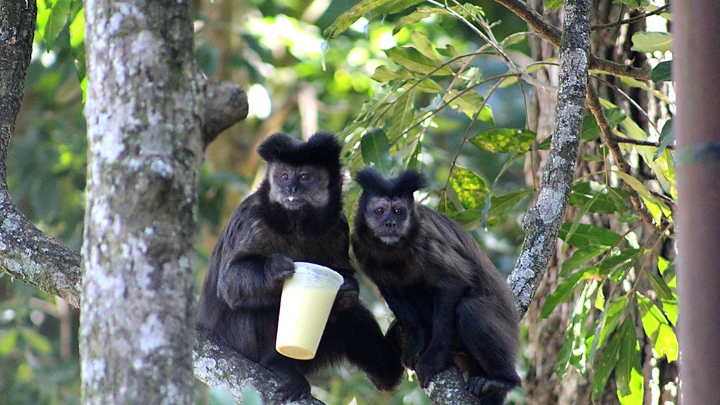 Imagem: Macacos-prego do Parque Estadual de Águas da Prata com alimento obtido de seres humanos